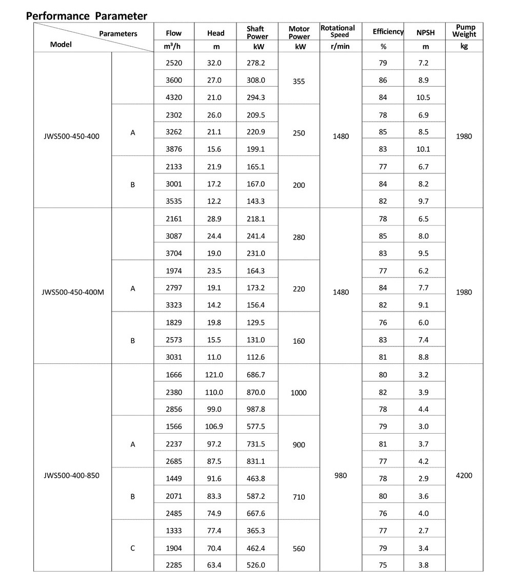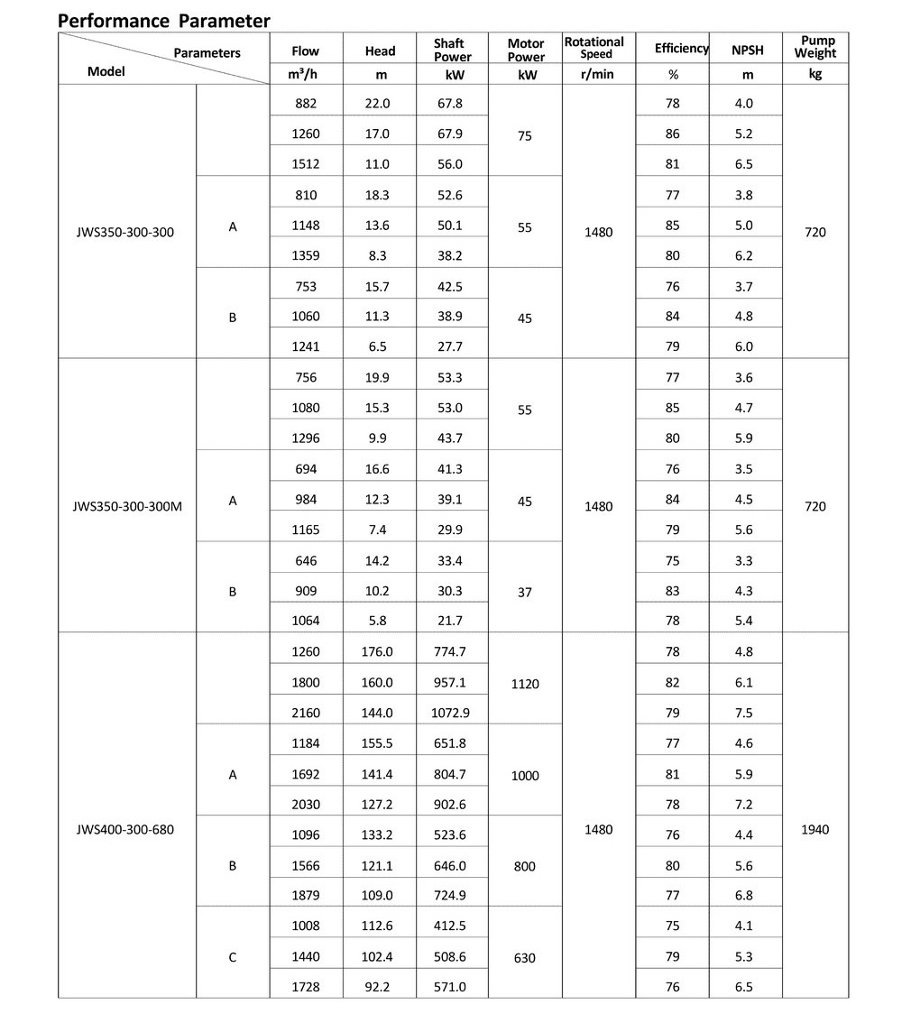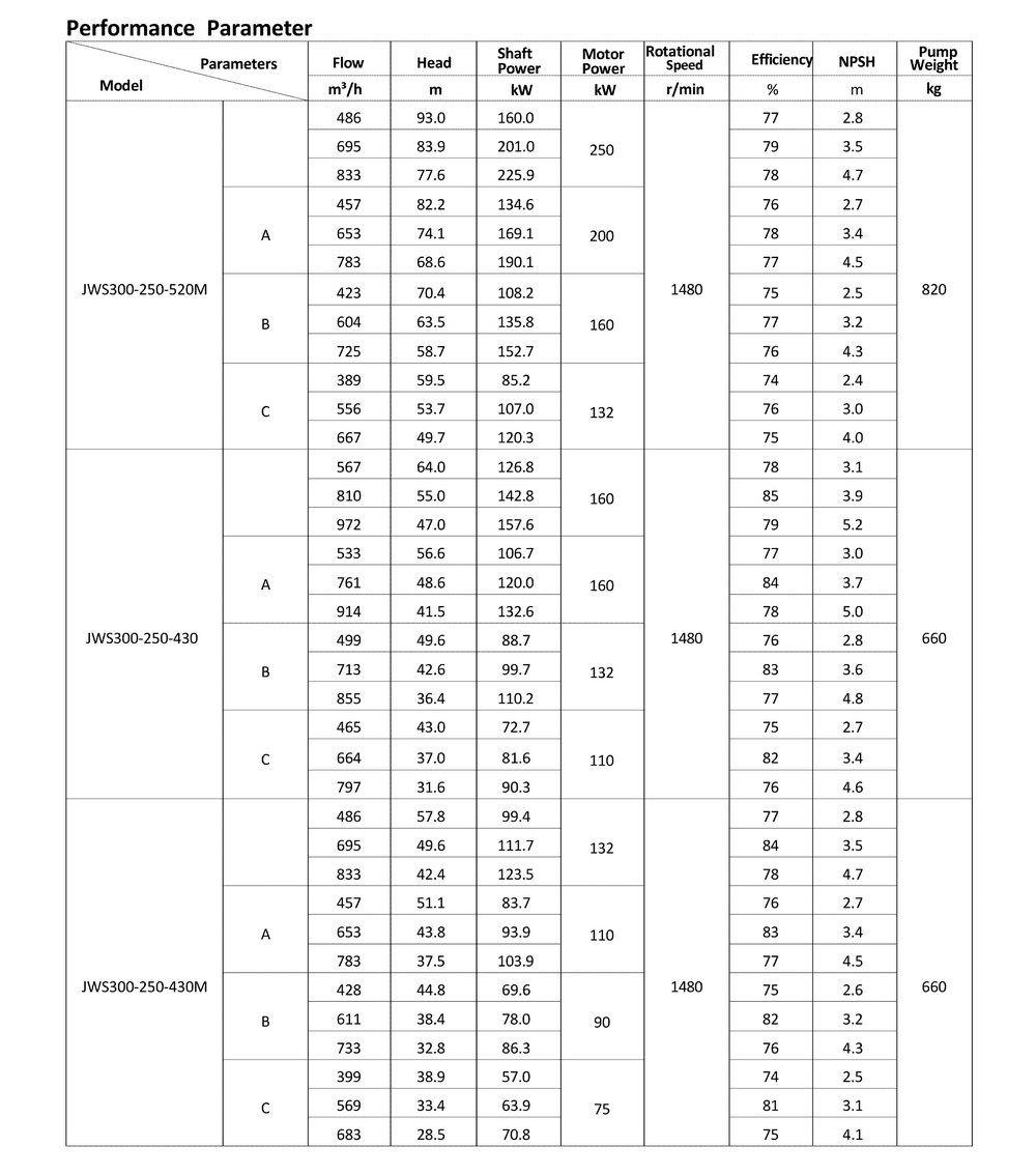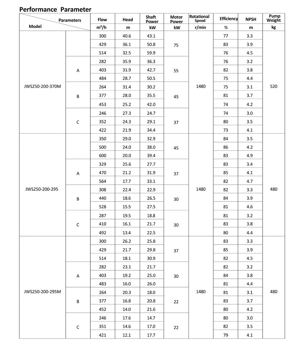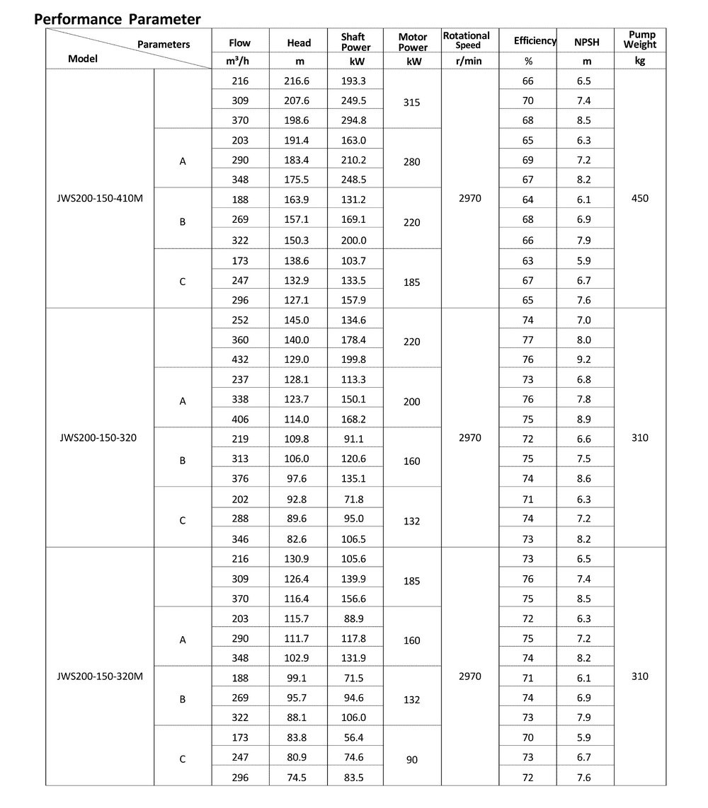 ● The design, manufacturing and quality control of the JWS pumps comply with the GB/T5656 "Centrifugal Pump Technical Requirements, Class II"standard,and its efficiency index meets the GB/T19762 "Clear Water Centrifugal Pump Energy Efficiency Limit and Energy Conservation Evaluation Value" or equivalent ISO standards.
