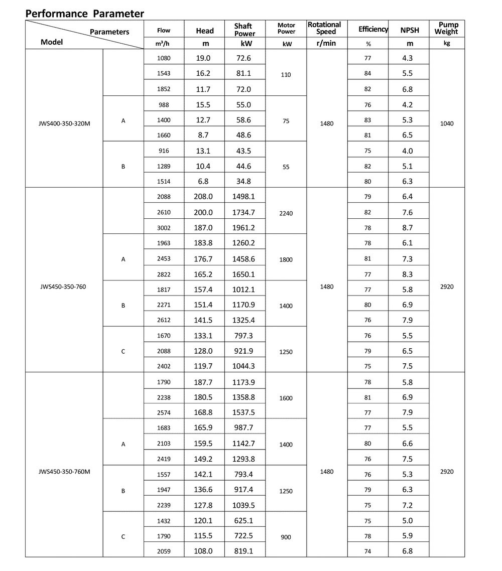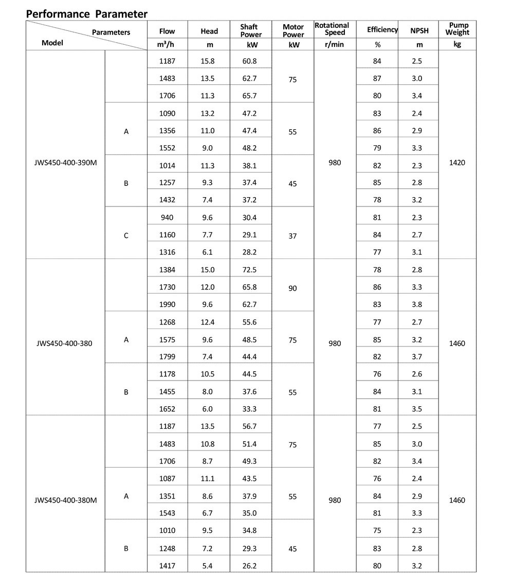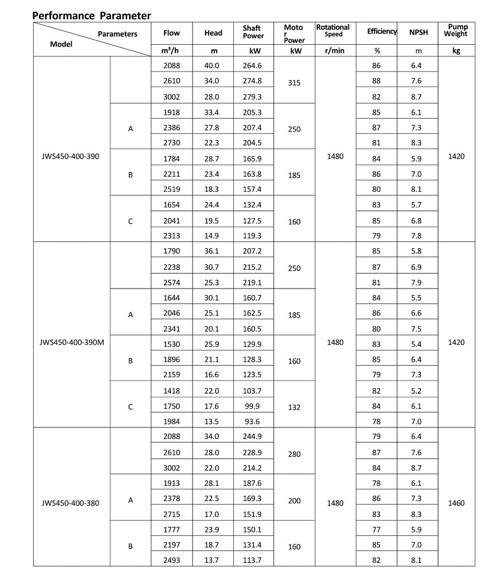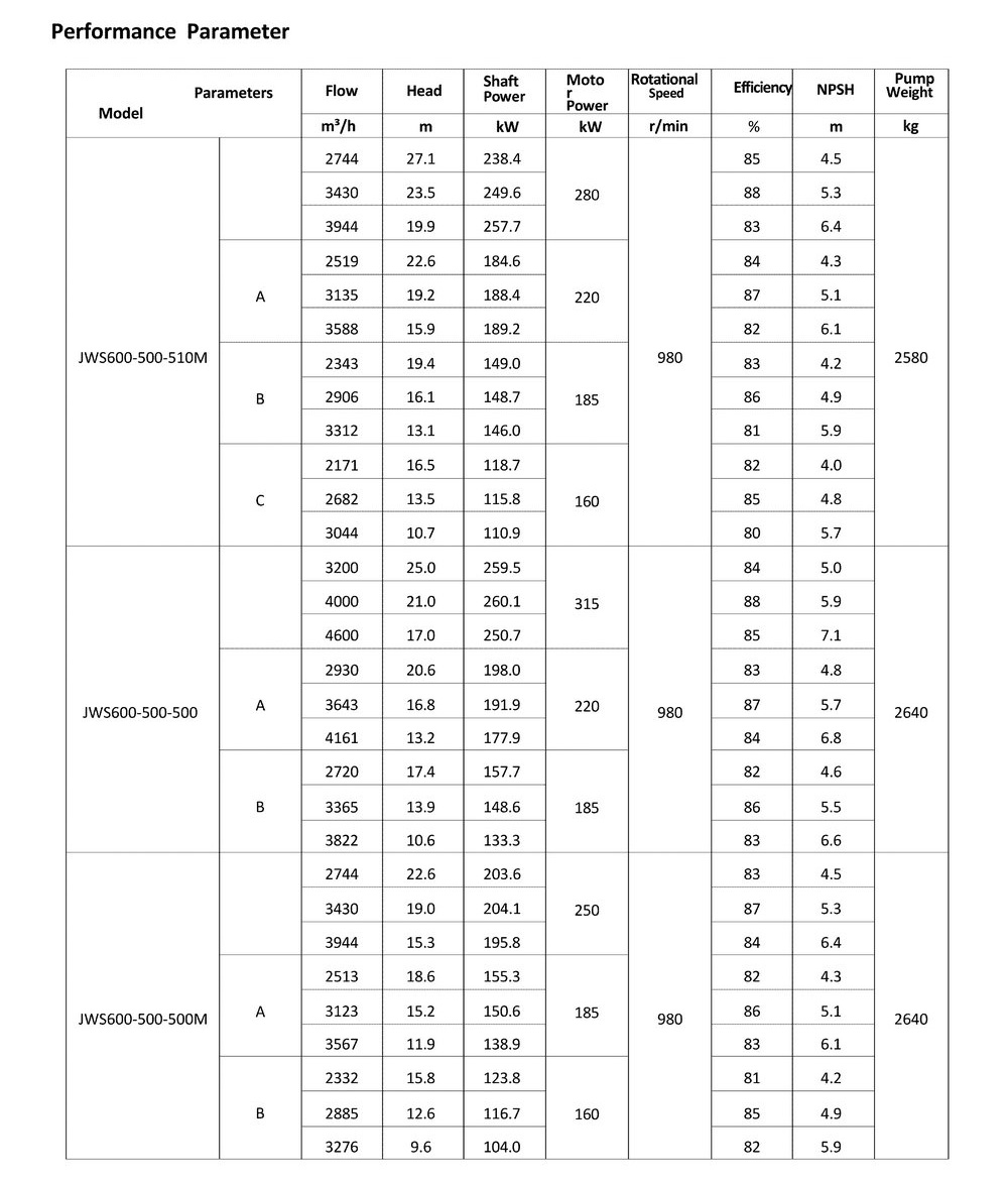 ● The design, manufacturing and quality control of the JWS pumps comply with the GB/T5656 "Centrifugal Pump Technical Requirements, Class II"standard,and its efficiency index meets the GB/T19762 "Clear Water Centrifugal Pump Energy Efficiency Limit and Energy Conservation Evaluation Value" or equivalent ISO standards.