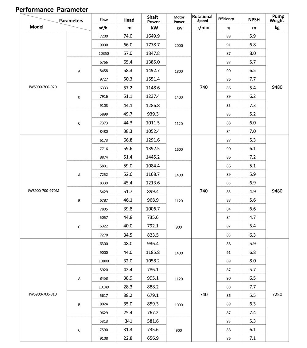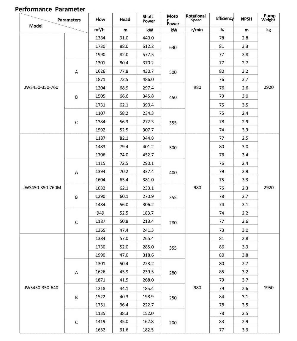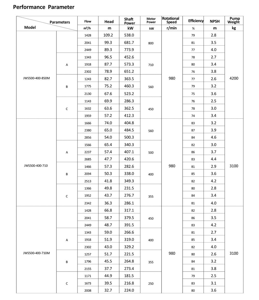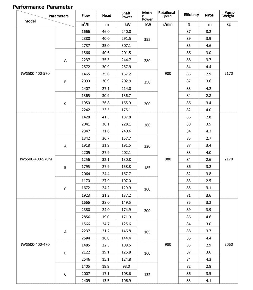● The design, manufacturing and quality control of the JWS pumps comply with the GB/T5656 "Centrifugal Pump Technical Requirements, Class II"standard,and its efficiency index meets the GB/T19762 "Clear Water Centrifugal Pump Energy Efficiency Limit and Energy Conservation Evaluation Value" or equivalent ISO standards.
