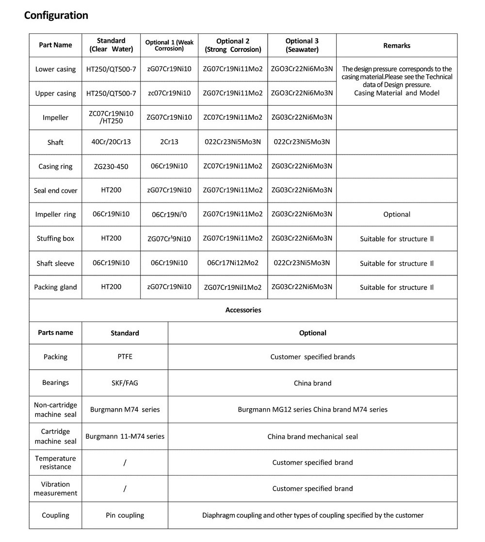 ● The design pressure is related to the material of the pump housing.The pressure of inlet and outlet flanges on the pump are related to the design pressure and material of the pump body.