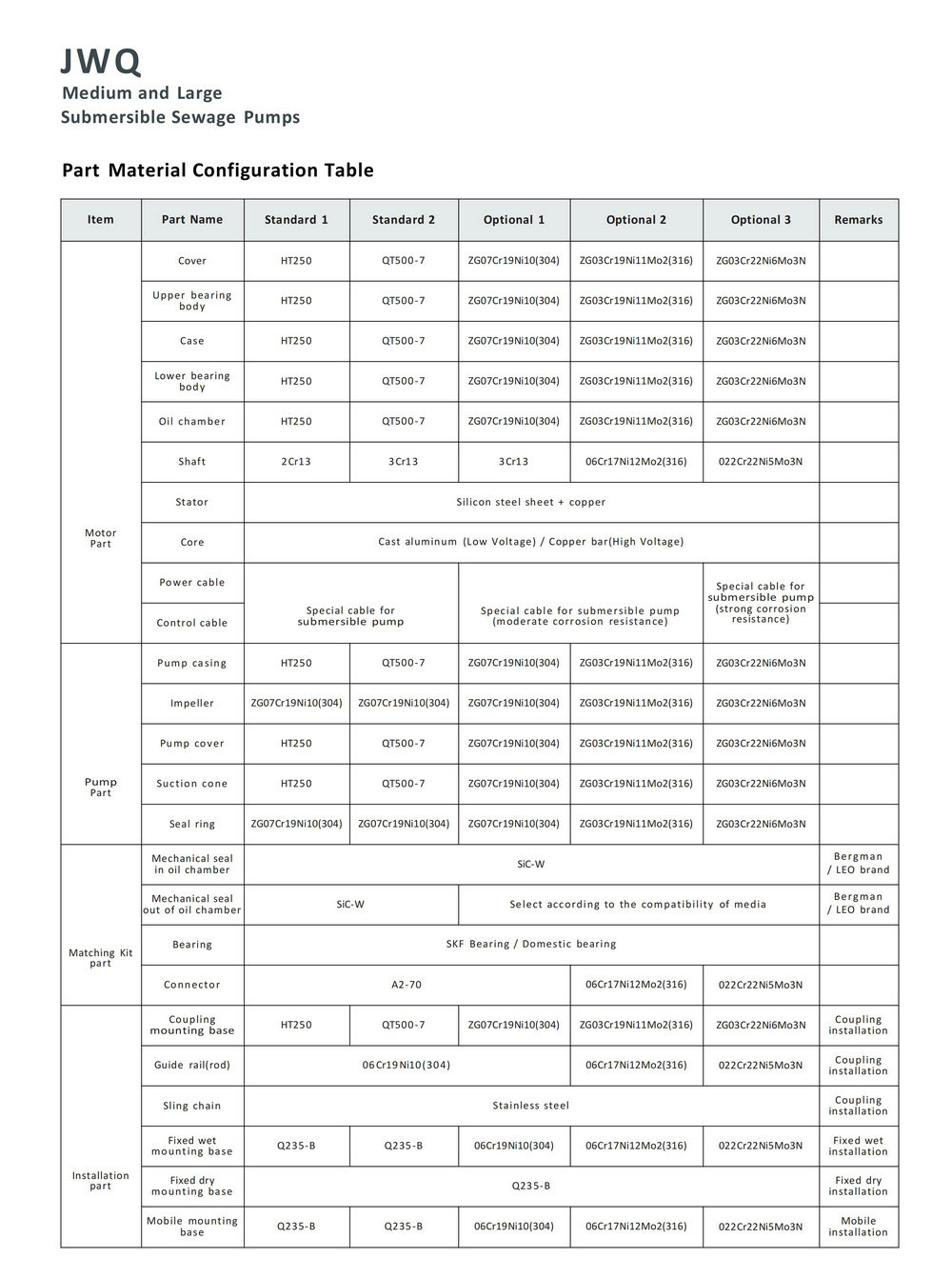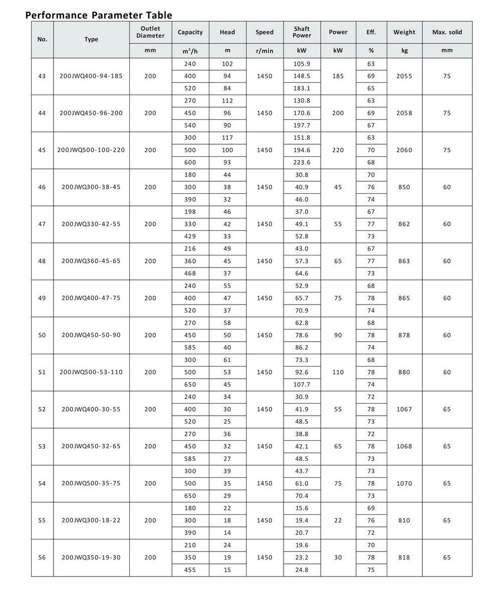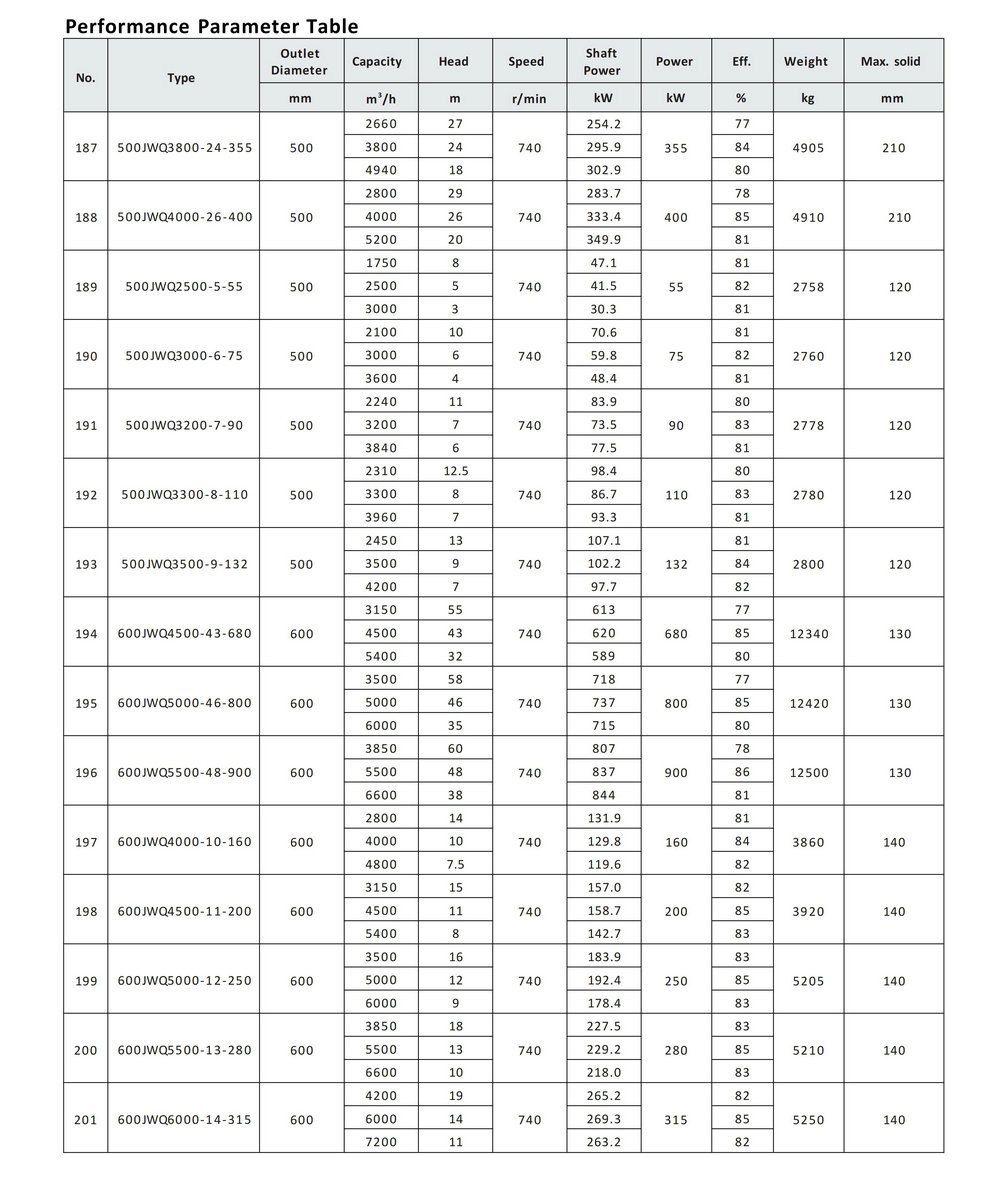 JWQ category products to transport various types of sewage, wastewater, rainwater, or other insoluble solid phase mixed liquids containing solid particles, sediment fiber, and so on.