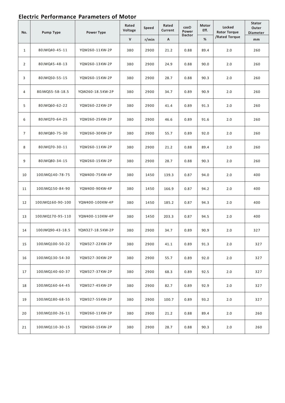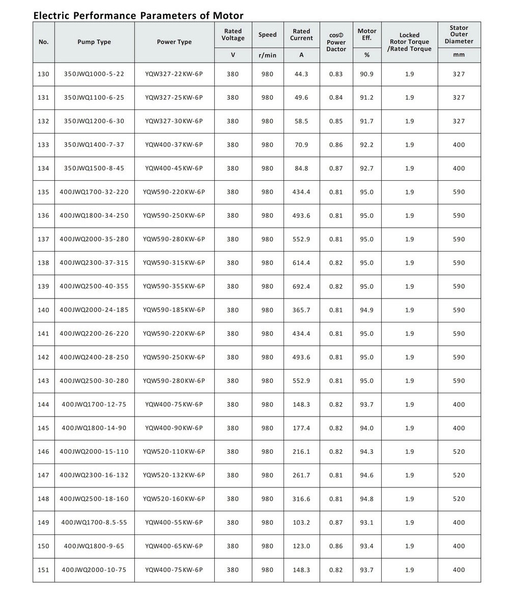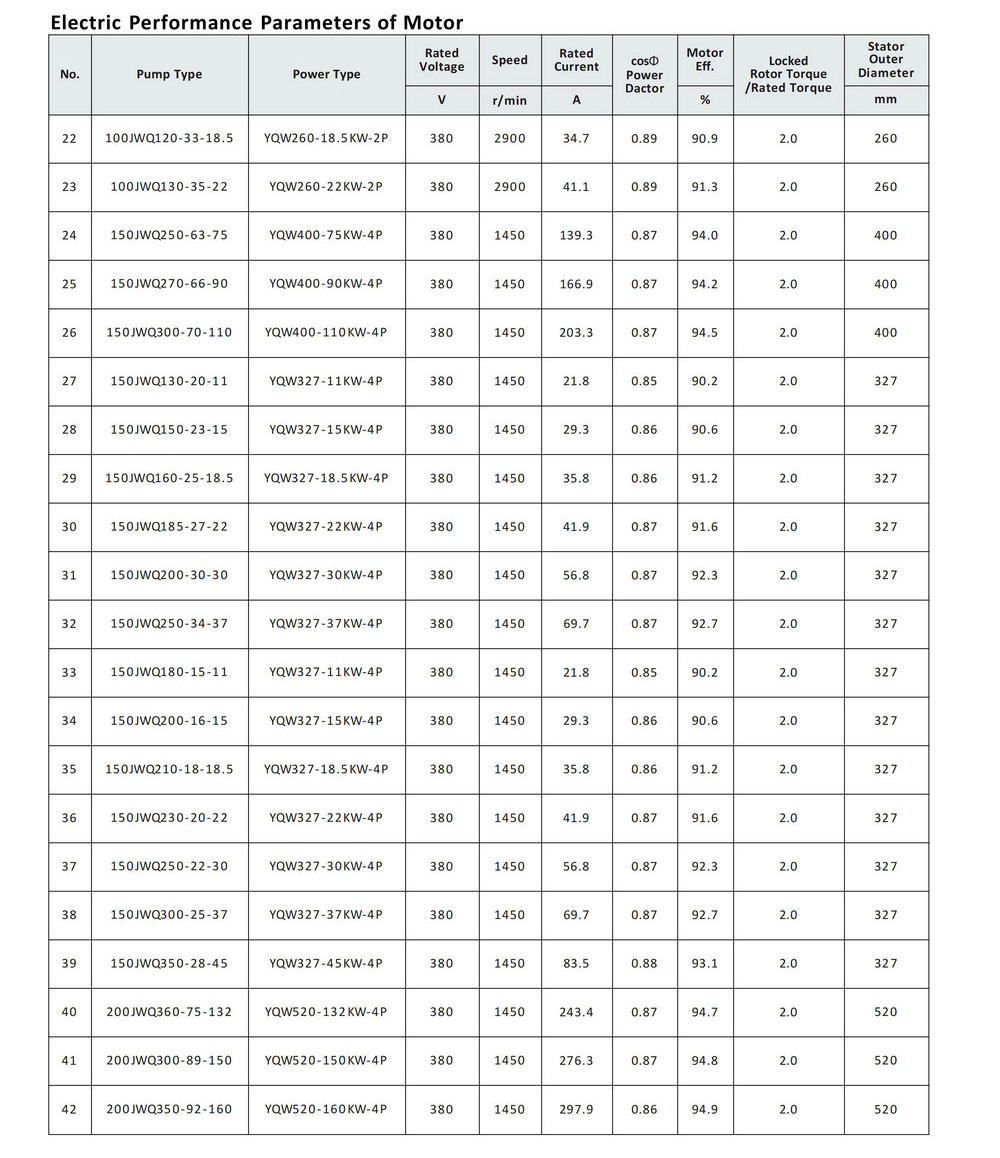 lEfficiency index reaches GB32031" Minimum Allowable Values of Energy Efficiency and Energy Efficiency Grades for Waste Submersible Motor-Pumps " standards.